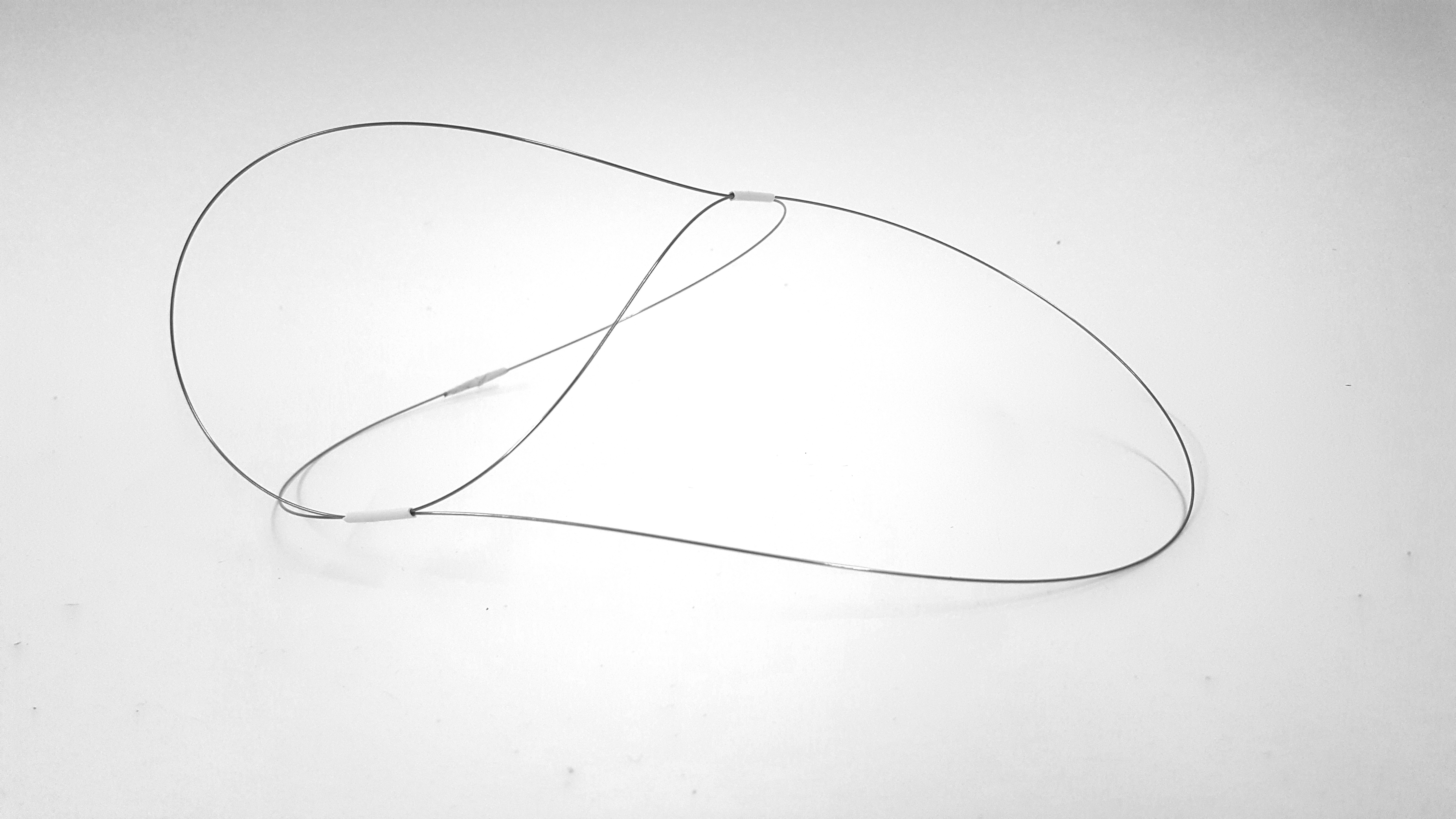 A bending-active system was chosed as a structurally efficient means to create space while conserving material and weight, theoretically reducing the work necessary of a robotic actuator. Designs began with simple rods to see what sort of geometries we could accomplish with compressive forces. A loop was the starting point so that the rod could be self-contained and not require any auxillary structures for stabilization. A geometry was found by pinching the rod in on itself twice with each contact point simulating a robotic node that can slide either connecting rod side-to-side. This simple geometry and actuation system results in a vast potential for states.